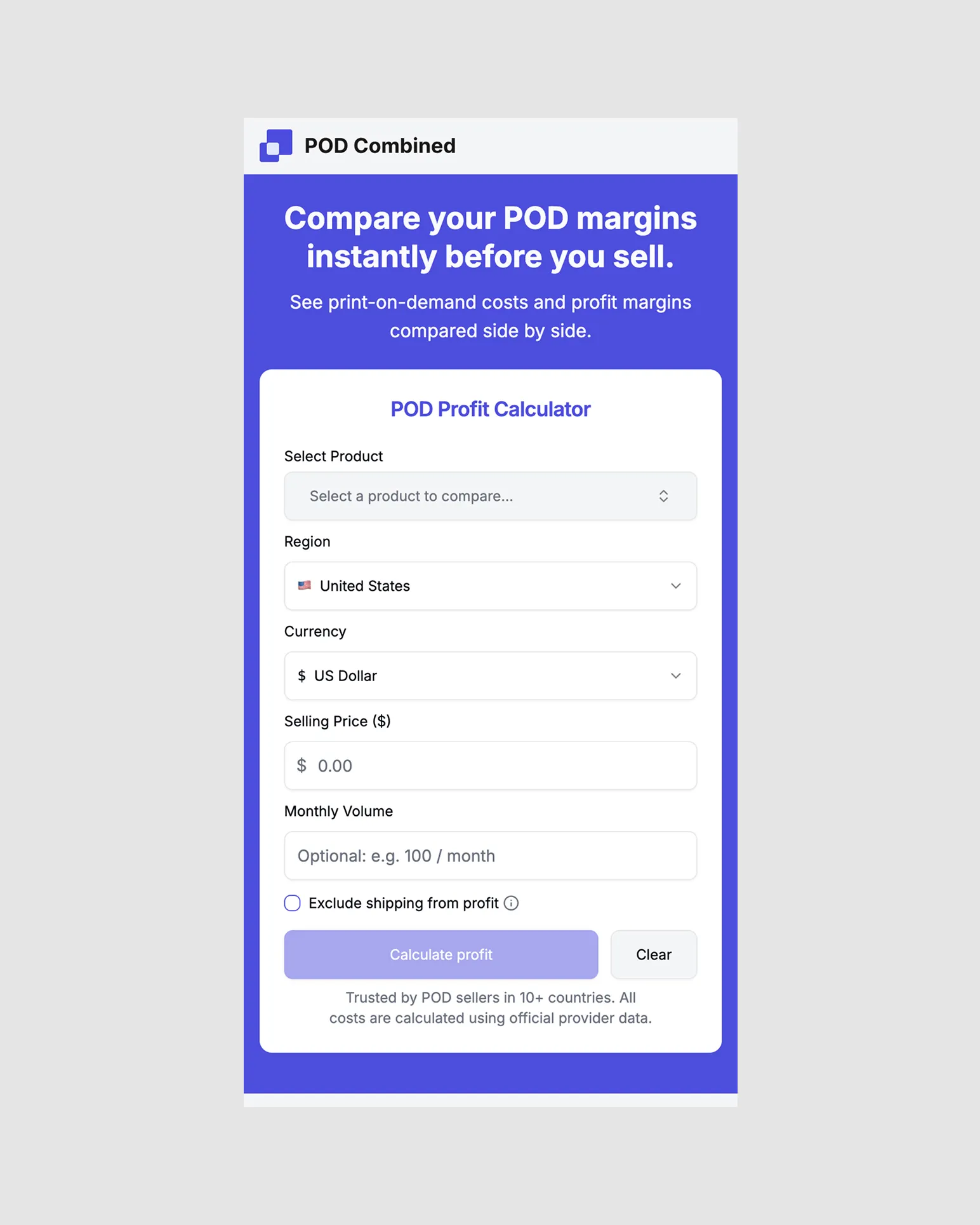 PODCombined: Print-on-Demand Profit Comparison Tool